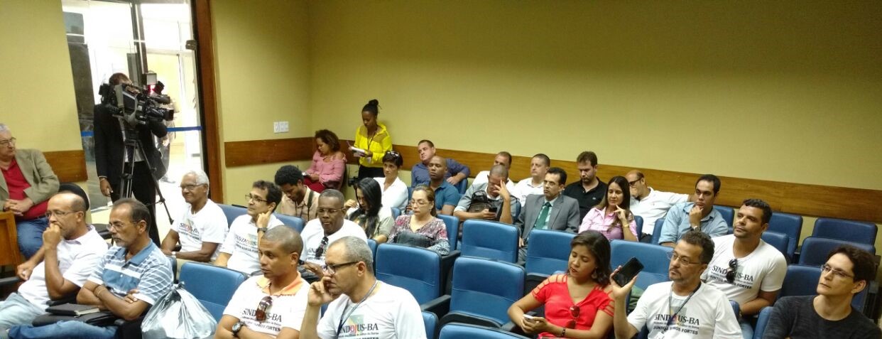 Em 03 de maio último, reuniram-se no Plenarinho da Assembleia Legislativa da Bahia, a Defensoria Pública, (representada pela Drª. Cristina Ulm), o Deputado Rosemberg Pinho, a Diretoria e filiados da capital e interior, a reunião foi motivada, a pedido do SINDOJUS-BA e viabilizada pelo Deputado Fabrício Soares, na oportunidade foi tratado da extinção de comarcas, e dificuldades estruturais para o cumprimento dos mandados.